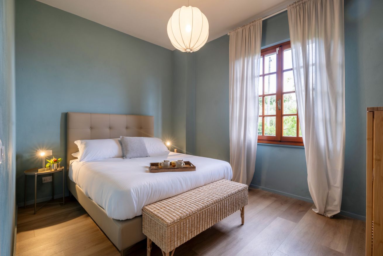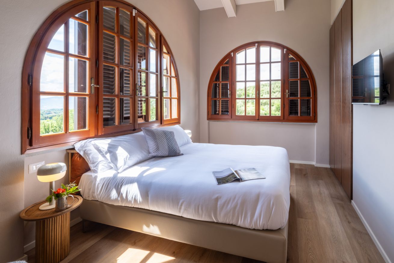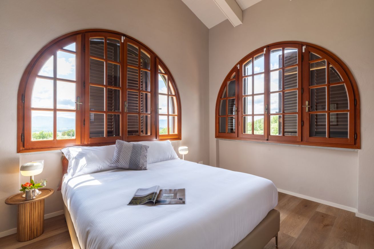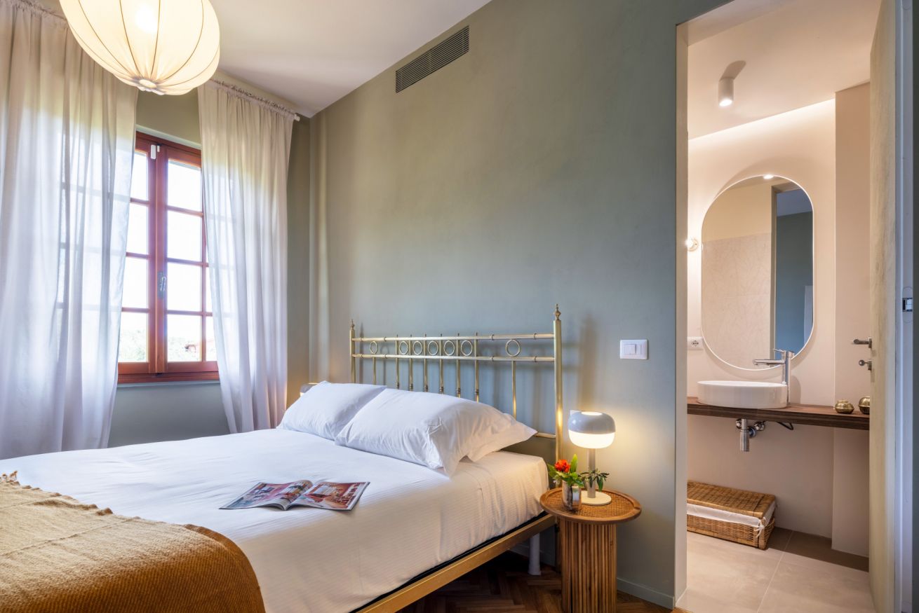 Salendo al secondo piano, scoprirete il lussuoso rifugio delle camere da letto. Sei eleganti camere da letto vi accolgono con raffinatezza e comfort, ognuna con il proprio bagno privato per garantire la massima privacy e comodità. Alcune camere offrono anche balconi privati, che regalano viste panoramiche mozzafiato sul paesaggio circostante.