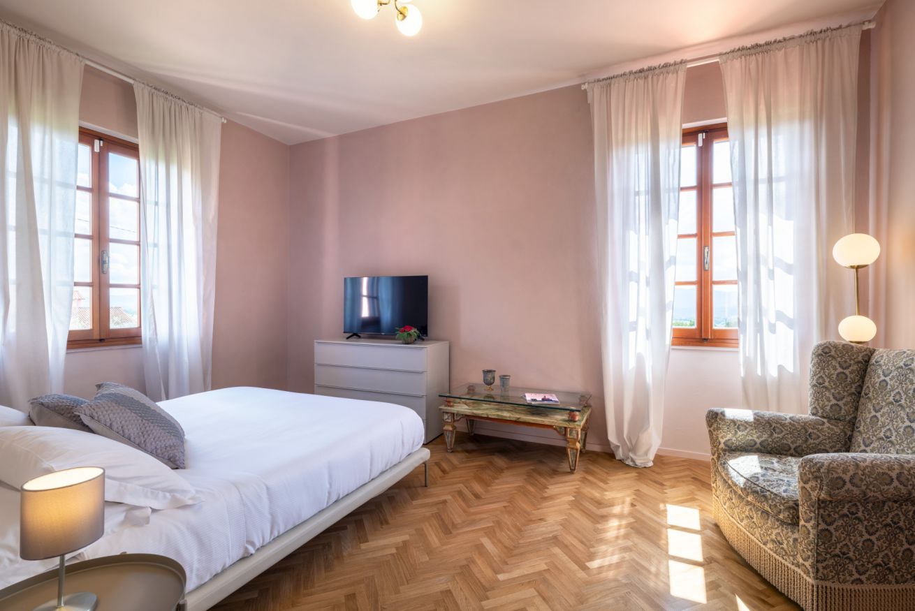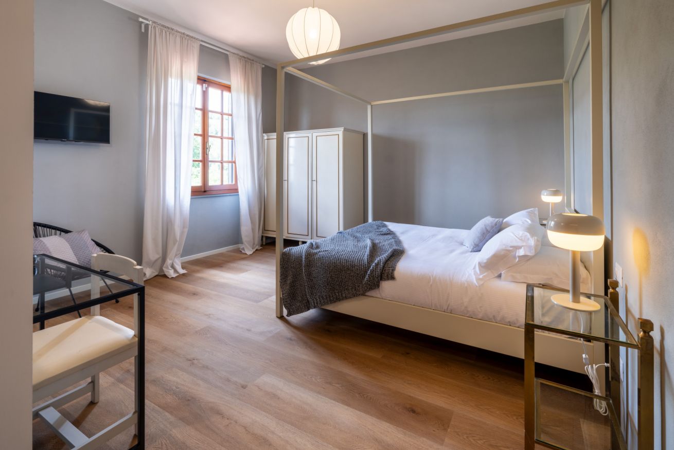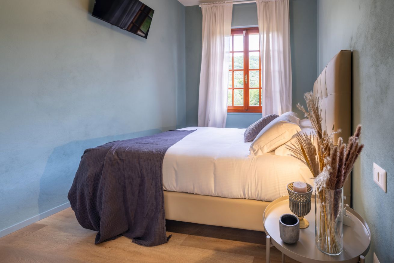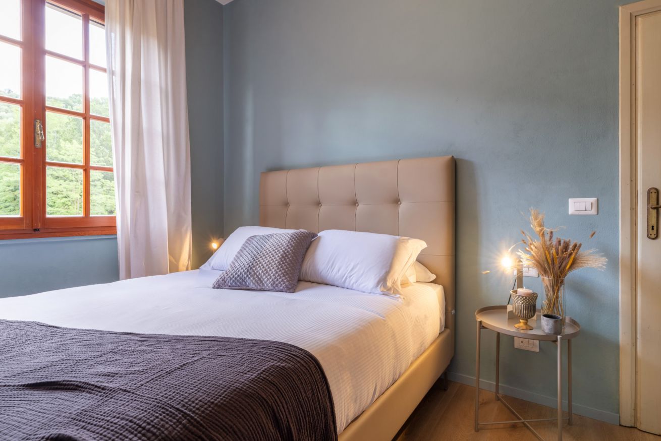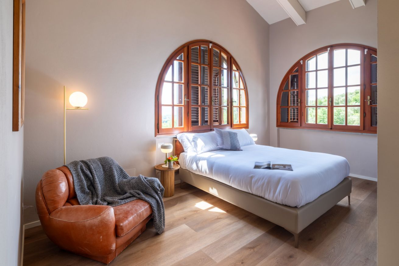 Salendo al secondo piano, scoprirete il lussuoso rifugio delle camere da letto. Sei eleganti camere da letto vi accolgono con raffinatezza e comfort, ognuna con il proprio bagno privato per garantire la massima privacy e comodità. Alcune camere offrono anche balconi privati, che regalano viste panoramiche mozzafiato sul paesaggio circostante.