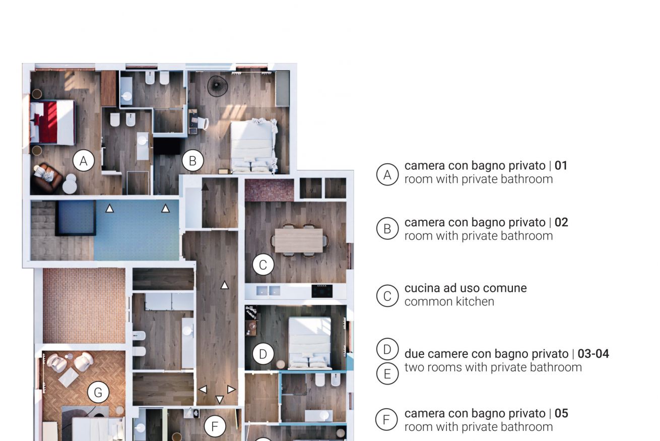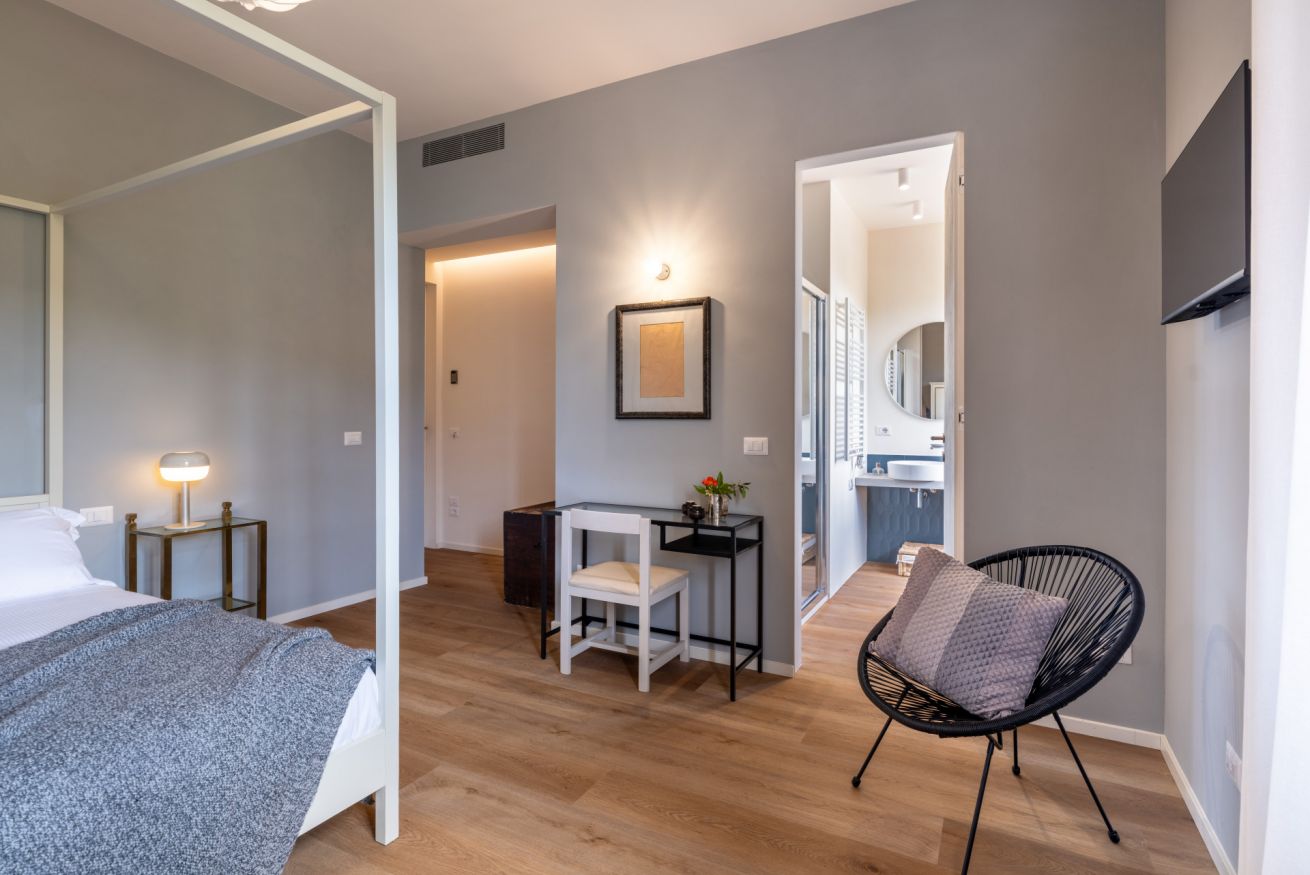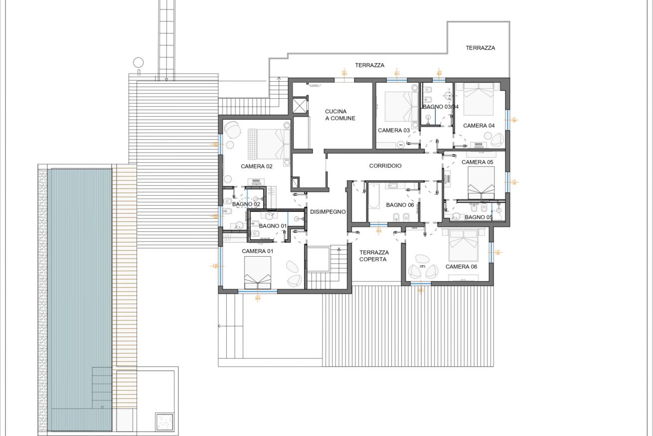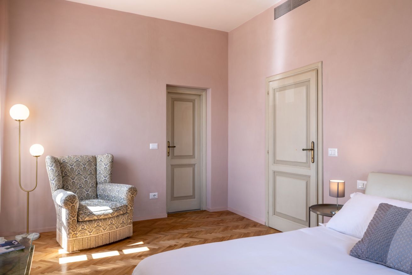 Salendo al secondo piano, scoprirete il lussuoso rifugio delle camere da letto. Sei eleganti camere da letto vi accolgono con raffinatezza e comfort, ognuna con il proprio bagno privato per garantire la massima privacy e comodità. Alcune camere offrono anche balconi privati, che regalano viste panoramiche mozzafiato sul paesaggio circostante.