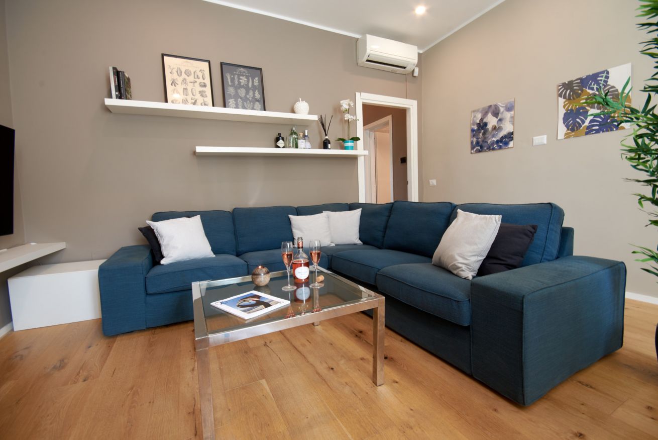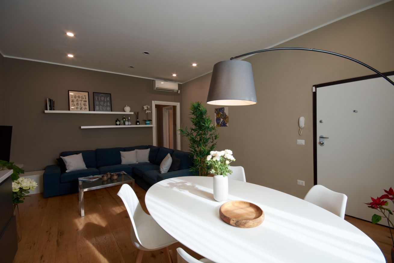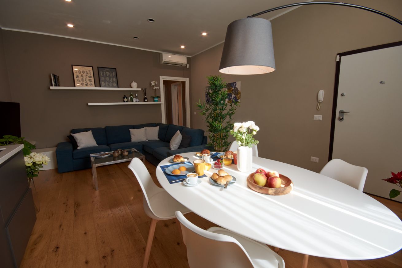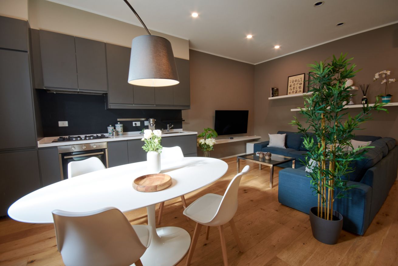 L'appartamento è stato finemente ristrutturato e offre un'atmosfera calda ed accogliente. Il pavimento in parquet conferisce eleganza e charme a tutti gli ambienti. L'ampio soggiorno con cucina a vista è il luogo ideale dove trascorrere del tempo in compagnia, con un comodo divano angolare e una TV 55" per godersi i momenti di relax. La cucina è completamente attrezzata e dotata di tutti gli elettrodomestici per cucinare comodamente in casa.