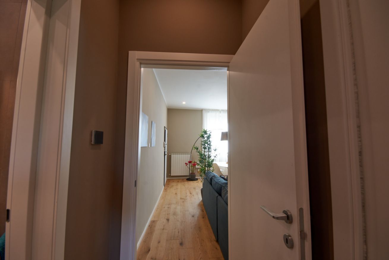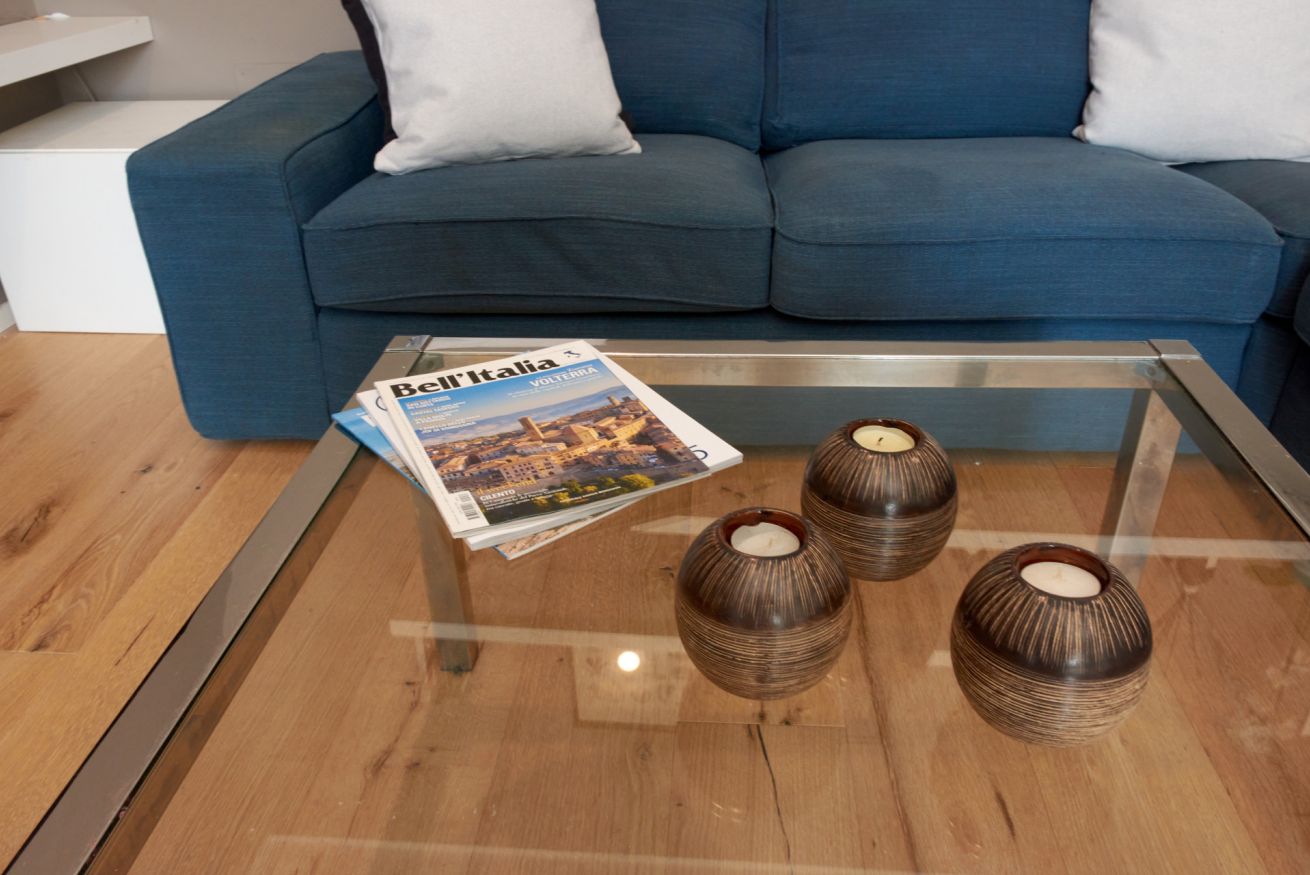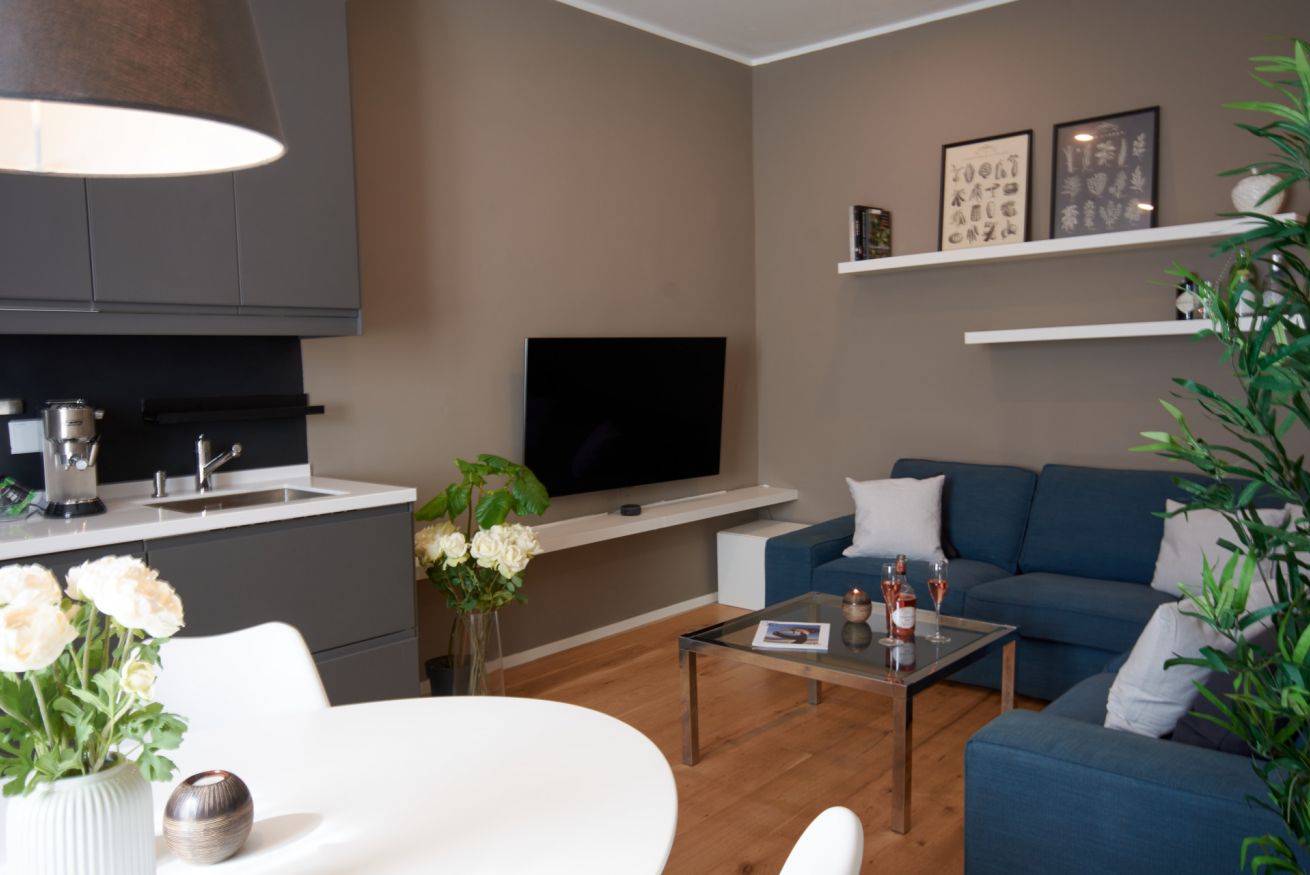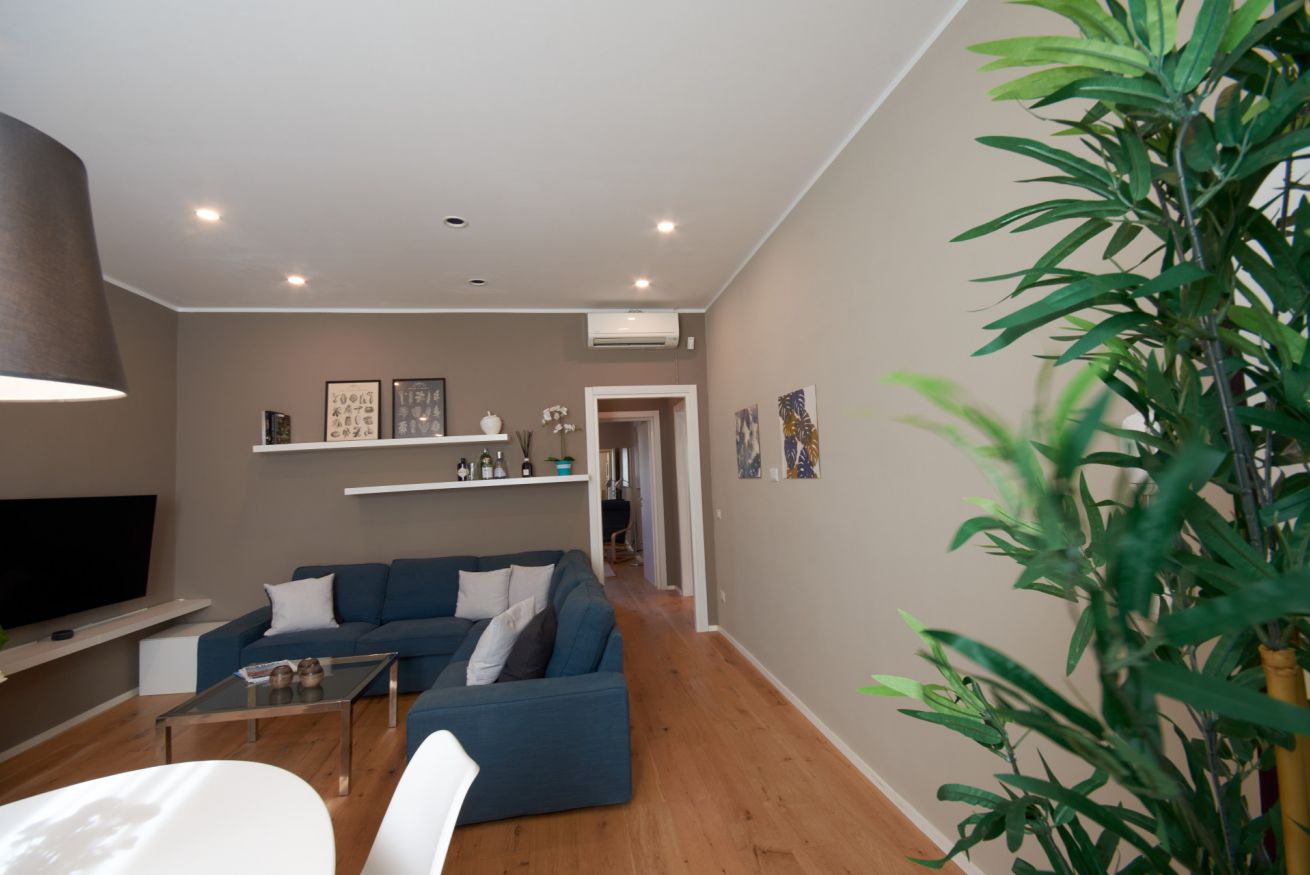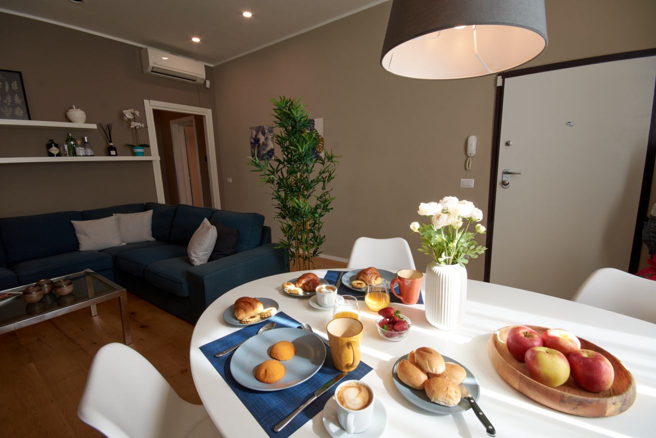 L'appartamento è stato finemente ristrutturato e offre un'atmosfera calda ed accogliente. Il pavimento in parquet conferisce eleganza e charme a tutti gli ambienti. L'ampio soggiorno con cucina a vista è il luogo ideale dove trascorrere del tempo in compagnia, con un comodo divano angolare e una TV 55" per godersi i momenti di relax. La cucina è completamente attrezzata e dotata di tutti gli elettrodomestici per cucinare comodamente in casa.