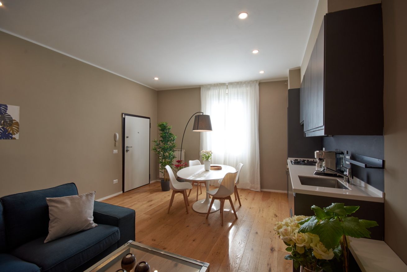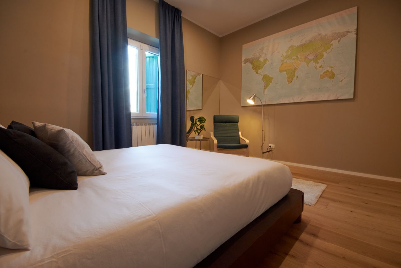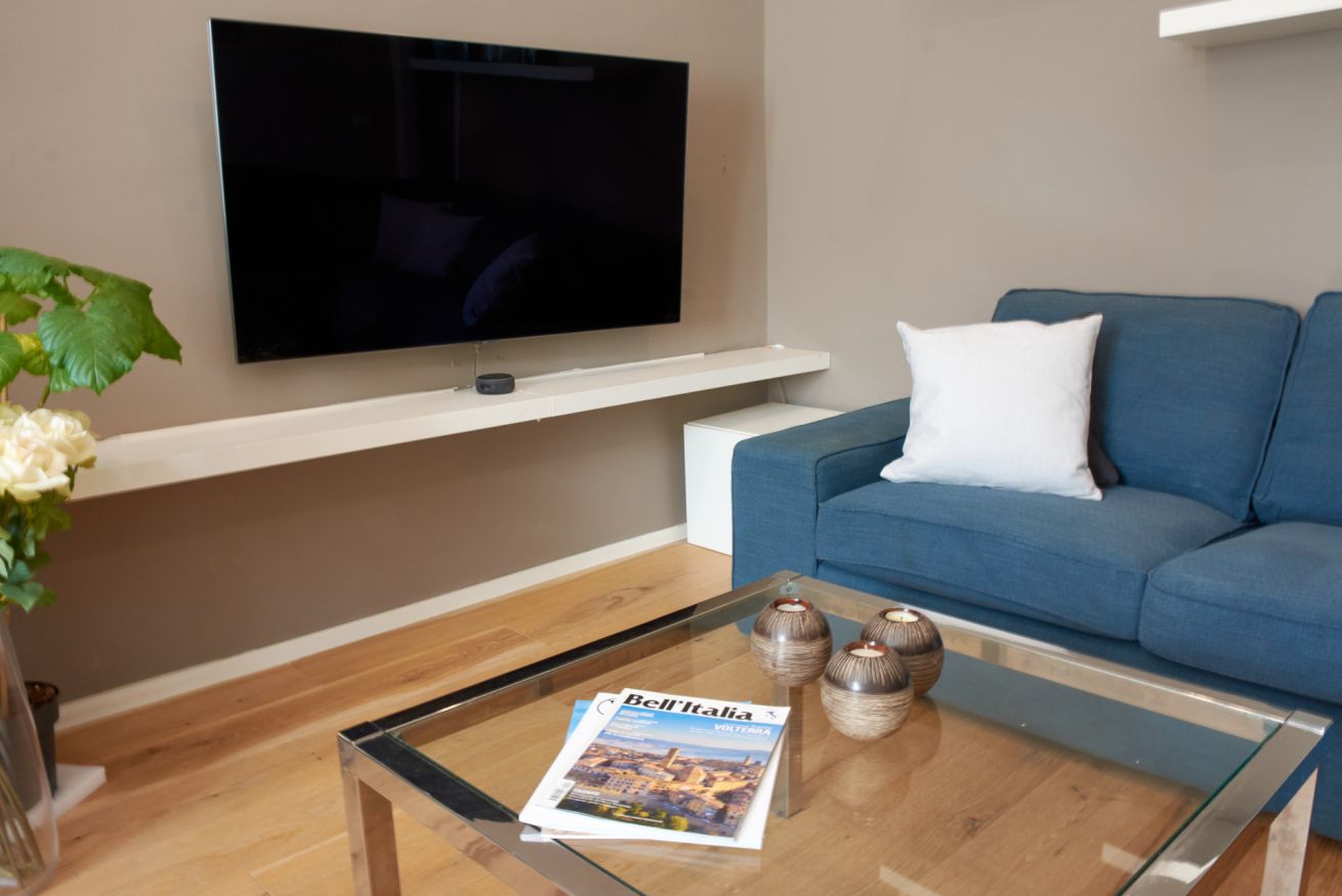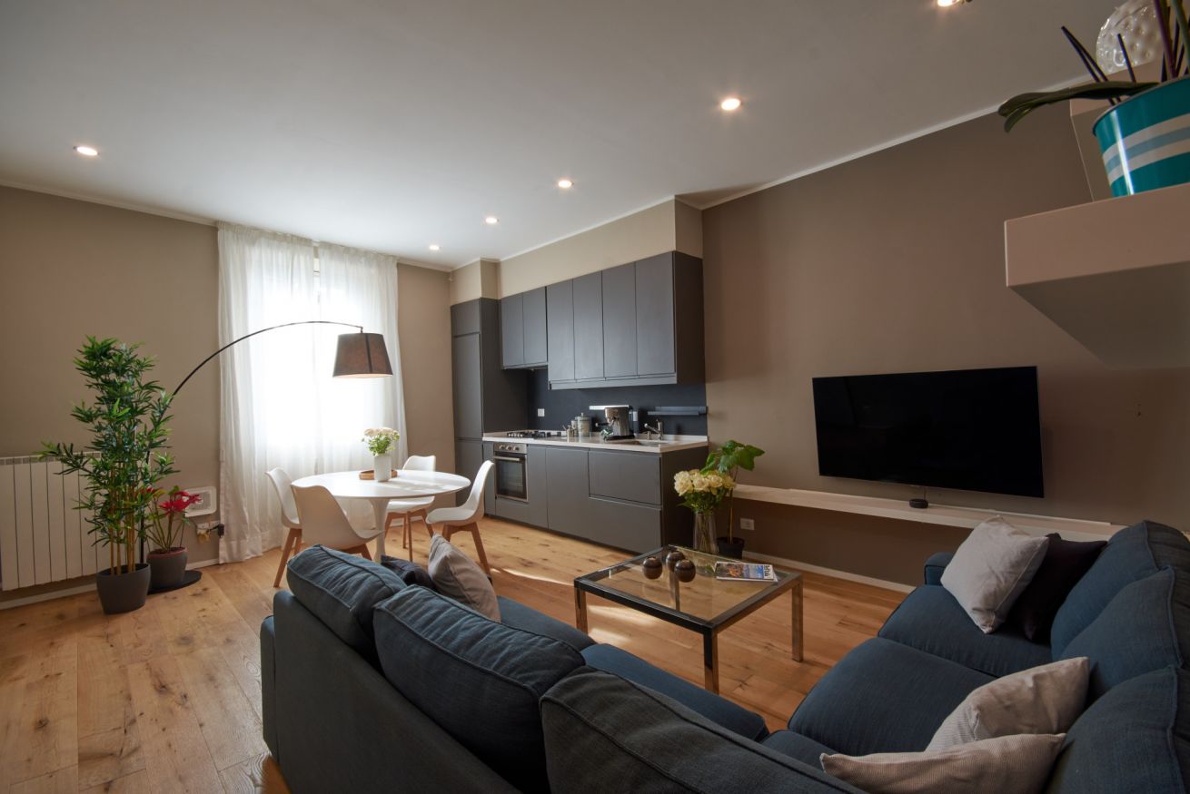 L'appartamento è stato finemente ristrutturato e offre un'atmosfera calda ed accogliente. Il pavimento in parquet conferisce eleganza e charme a tutti gli ambienti. L'ampio soggiorno con cucina a vista è il luogo ideale dove trascorrere del tempo in compagnia, con un comodo divano angolare e una TV 55" per godersi i momenti di relax. La cucina è completamente attrezzata e dotata di tutti gli elettrodomestici per cucinare comodamente in casa.