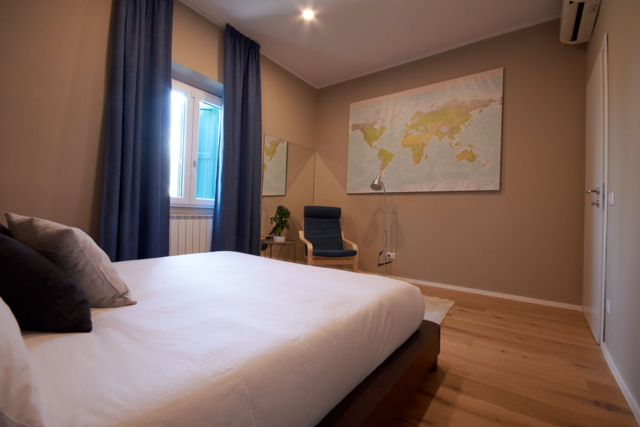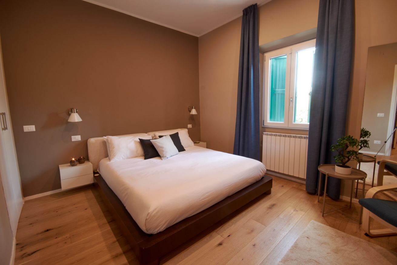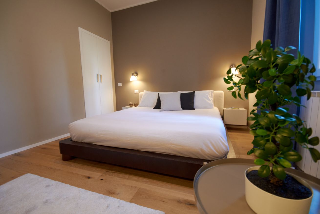 La camera da letto è spaziosa e confortevole, con un grande letto King Size (180x200) e un materasso TEMPUR® per garantire il massimo del comfort durante il riposo. La cabina armadio offre uno spazio ampio e ordinato per riporre i propri abiti, mentre il bagno è dotato di tutti i servizi e di una doccia spaziosa.