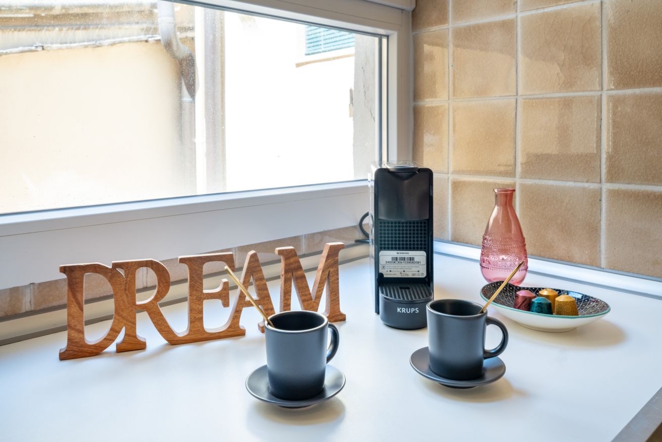L'appartamento comprende una spaziosa camera da letto con un comodo letto matrimoniale (160x200), ideale per rilassarsi dopo una giornata trascorsa a esplorare la città. La piccola cucina, perfetta per preparare la colazione, è dotata di tutto l'essenziale: macchinetta del caffè Nespresso, bollitore e l'indispensabile per cucinare.